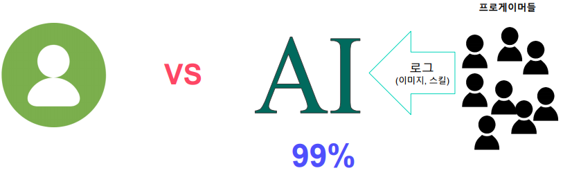 게임 유저와 1 vs 1 대전하는 AI 모델을 예시로 하여 평가 데이터 및 평가 방식에 대해 알아보자. AI모델의 입력은 게임화면 이미지이고 출력은 그 이미지 상황에 맞는 스킬셋 하나가 될 것이다.