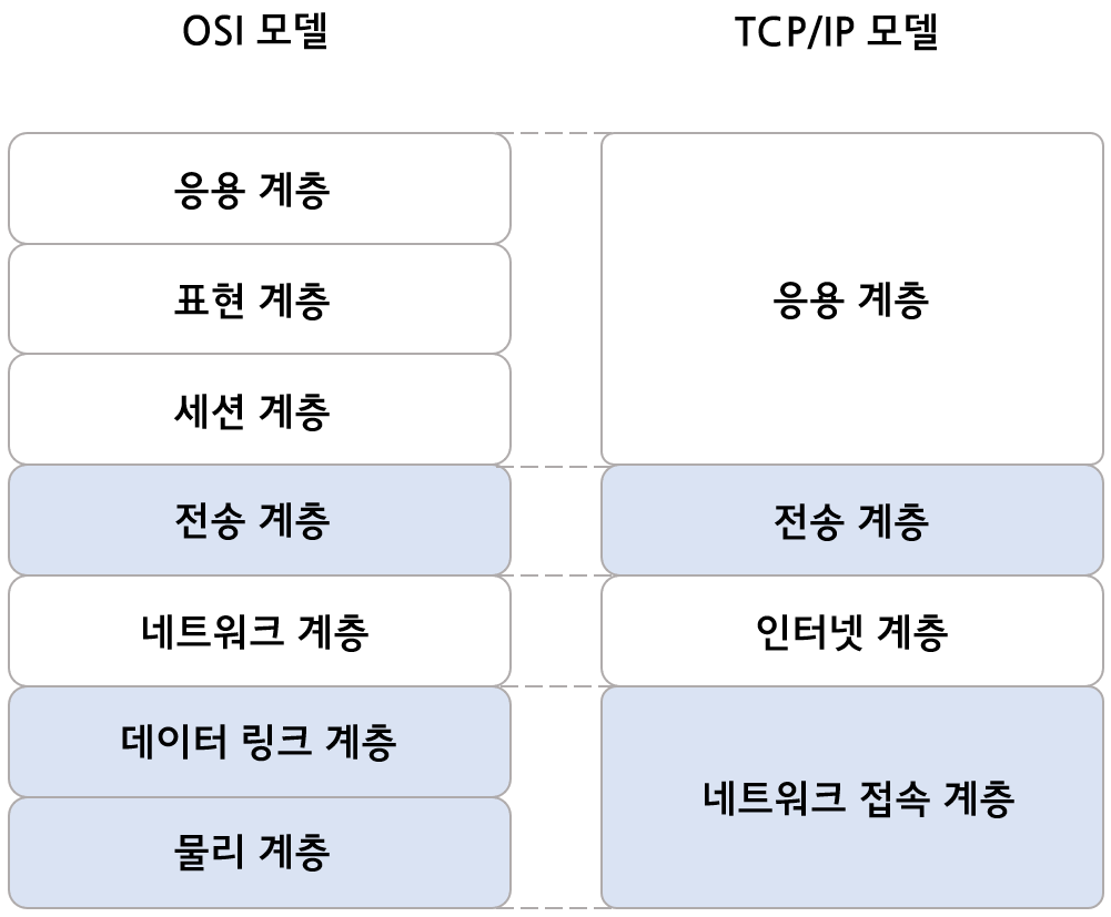 | 4계층 | 전송 계층 | 신뢰할 수 있는 통신 구현 |