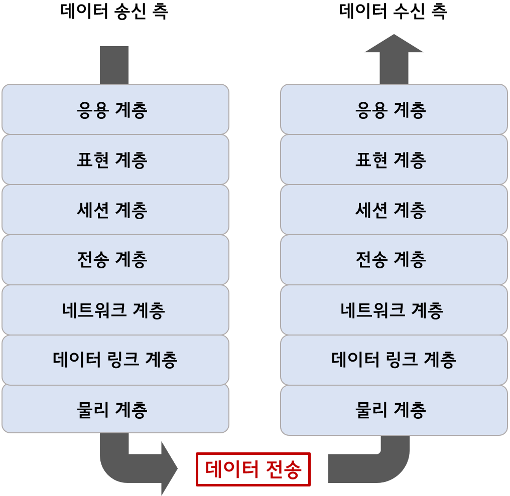 | 6계층 | 표현 계층 | 문자 코드, 압축, 암호화 등 데이터 변환 |