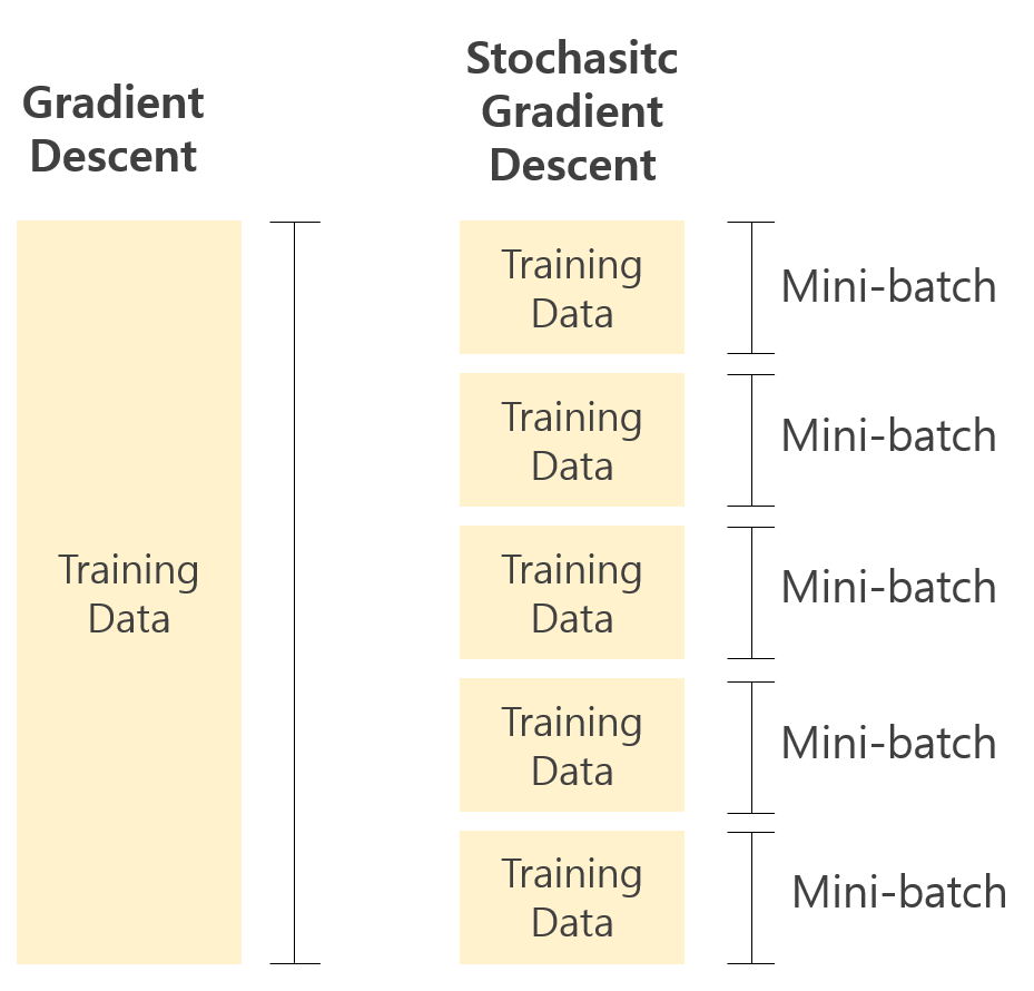 신경망의 학습은 경사 하강법으로 매개변수를 갱신하는 과정이다. 하지만 매개변수를 한 번 갱신하기 위해 모든 데이터를 다 입력해야 하는데, 이는 엄청난 시간이 걸린다. 때문에 전체 데이터셋 중에서 일부를 랜덤으로 선별하여 학습하는 것을 반복하는 방법을 고안하였는데 이를 이를 확률적 경사 하강법(Stochastic Gradient Descent, SGD)이라 한다. 확률적으로 무작위로 골라낸 데이터에 대해 경사 하강법을 수행한다는 의미이다. 전체 데이터셋을 랜덤으로 선별한 데이터를 미니배치라 한다.