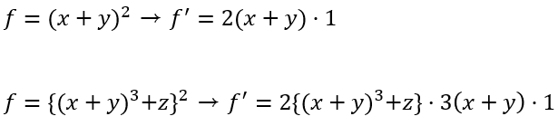 이 합성 함수의 미분 과정을 수식으로 표현하면 다음과 같다.