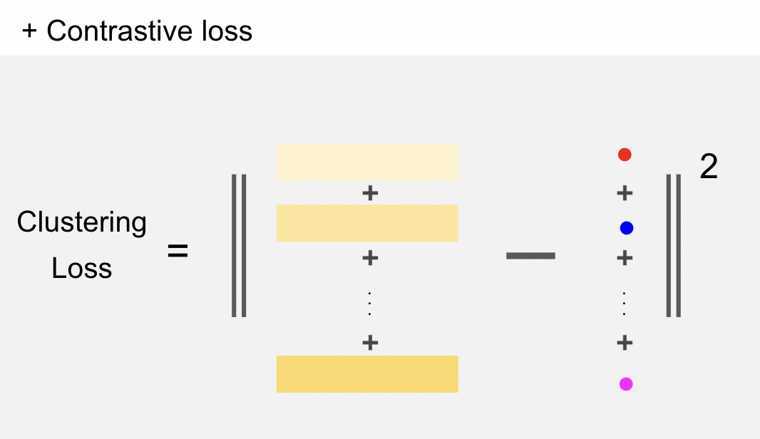 - Clustering loss : offers incentives for representations of documents around a centroid to be close
