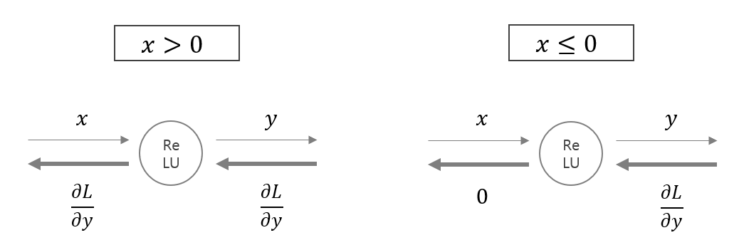 순전파에서 입력이 x > 0이면 역전파에서 upstream 값을 그대로 downstrem으로 보내는 반면, 입력이 x <= 0이면 역전파에서 upstream 값을 downstream으로 보내지 않는다.