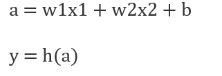 보다시피 뉴런이 연결되는 방식은 퍼셉트론과 유사하다. 신경망의 신호 전달 방법을 보기 위해 잠깐 퍼셉트론과 그 수식을 보면 다음과 같다.