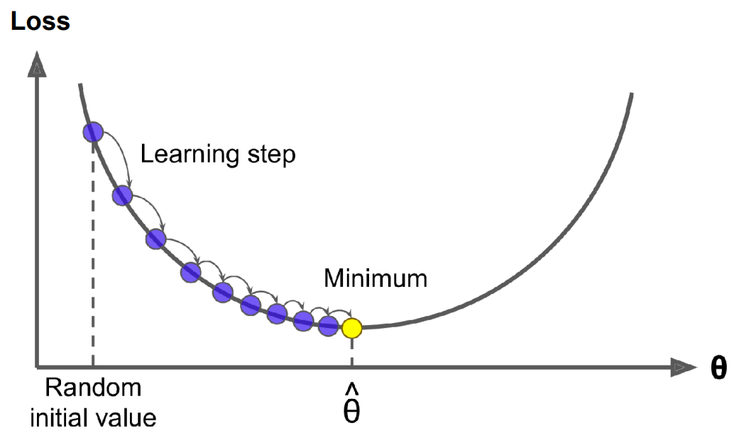 따라서 얼마나 이동할 것인지에 대한 보폭 사이즈(learning rate)를 설정해야 한다.