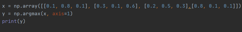 axis=1은 첫번째 차원을 구성하는 요소 중 최댓값의 인덱스를 찾도록 하는 인수이다. 예를 들면 다음과 같다.