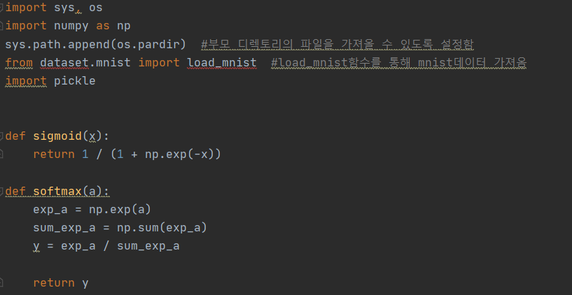MNIST데이터셋을 이용하여 추론을 수행하는 신경망을 구현해볼 것이다.