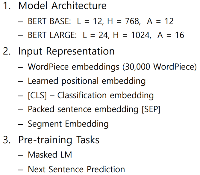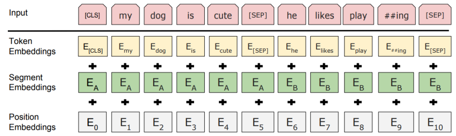 - Input vector는 word 단위를 token으로 하지 않고, WordPiece를 사용하여 word를 더 잘게 쪼갠 sub-word들을 token으로 하여 encoding한 것이다.
