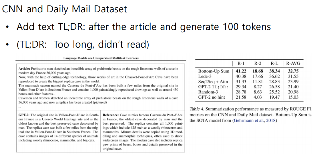 · Summarization task 결과